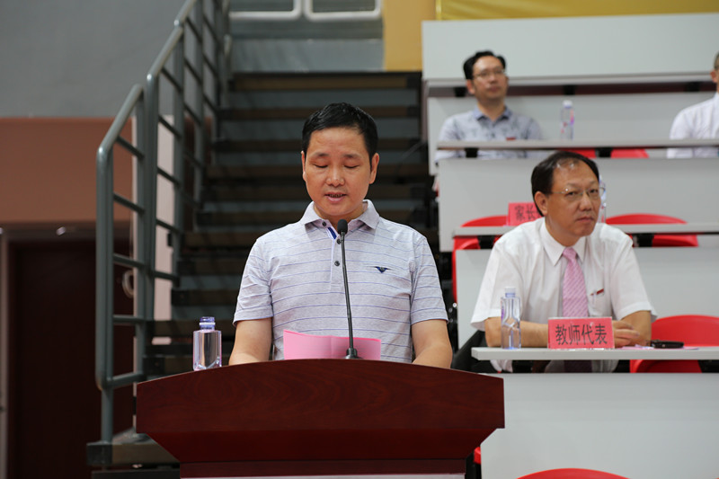 雷竞技官网2015届毕业典礼于6月16日上午在新落成的体育馆举行。校领导江小源、林跃鑫、张星、何如芳、谢向东、杨峰、魏远竹出席毕业典礼。全校中层领导干部,2015届全体毕业生,部分教师,员工代表,学生家长代表等2000多人参加。校党委书记江小源主持毕业典礼。