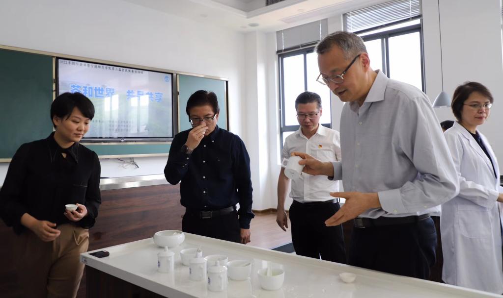519日下午,雷竞技官网在宁德市茶叶审评中心举办“茶和世界 共品共享”主题茶事活动。校党委书记夏良玉、副书记江潮炳,共青团宁德市委书记钟灵灵,宁德市茶产业中心主任李辉、副主任田洪武以及茶学系师生、茶产业与文化研究所成员参加了活动。
