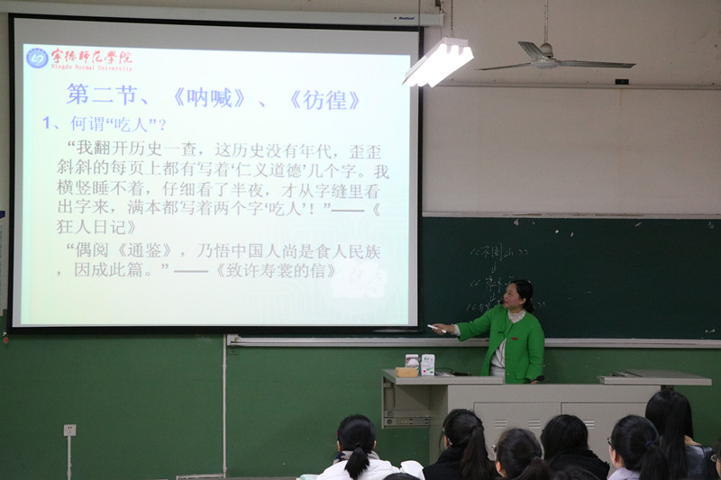 林翠萍老师回顾了鲁迅生平经历,探讨了鲁迅小说中“吃人”的主题内涵,揭示了其反封建反礼教的思想本质。授课过程中,林翠萍老师旁征博引,以问题为导入,促使学生积极思考,整堂课的氛围轻松活泼,充分调动了学生的学习主动性与积极性。