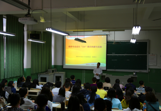 11月15日上午,教育系特邀首届“七彩语文”杯全国语文教师素养大赛特等奖获得者、福安实验小学富阳校区副校长陈智文老师来校开展“教师专业成长264模式构建”专题讲座。教育系主任赵峰、党总支书记郑敬容、副主任邓惠明,及2014级小学教育专业的全体同学听取讲座。讲座由邓惠明主持。