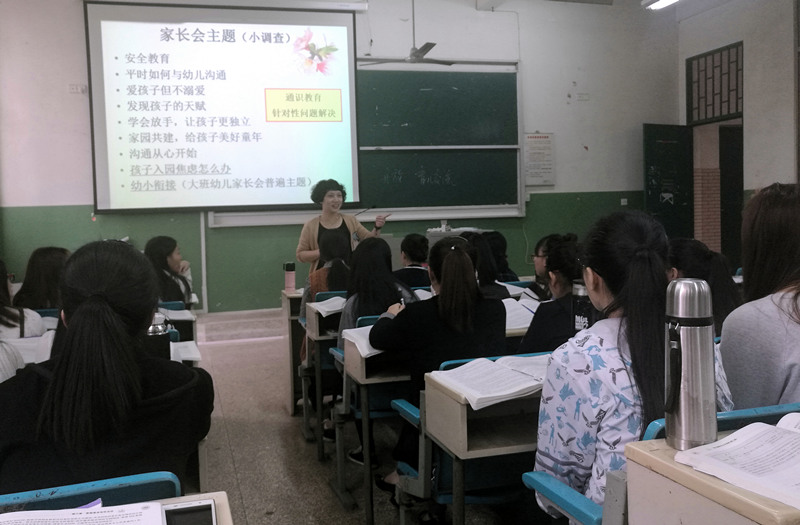 11月17日上午10点,教育系邓惠明教授的示范课在蕉城校区21号楼101教室开讲。此次示范课观摩活动由校教学督导委员会主办、教师发展中心协办、教育系承办。本次示范课的内容为《幼儿园家长工作指导》课程之“幼儿园家长工作的形式”,教学围绕家长工作的形式和具体实施展开。以课前的组织学生开展的“幼儿园家长工作调查”为基础,使学生对幼儿园家长工作的形式和现状形成整体认识。在此基础上本节课还着重介绍了幼儿园家长会的组织和实施。课程目标明确,不仅关注学生对相关知识、技能的理解与获得,还关注专业意识和实践研究能力的培养。教学素材来源广泛,使用灵活,直观性强。既有借助小调查唤起的学生已有经验,也有教师多年从事家长教育工作的经验分享课堂中,教师语言干净利索、幽默经典,课堂氛围轻松愉快,理论学习与实践指导的完美融合,调动了学生学习的积极性和热情,教学效果非常理想。