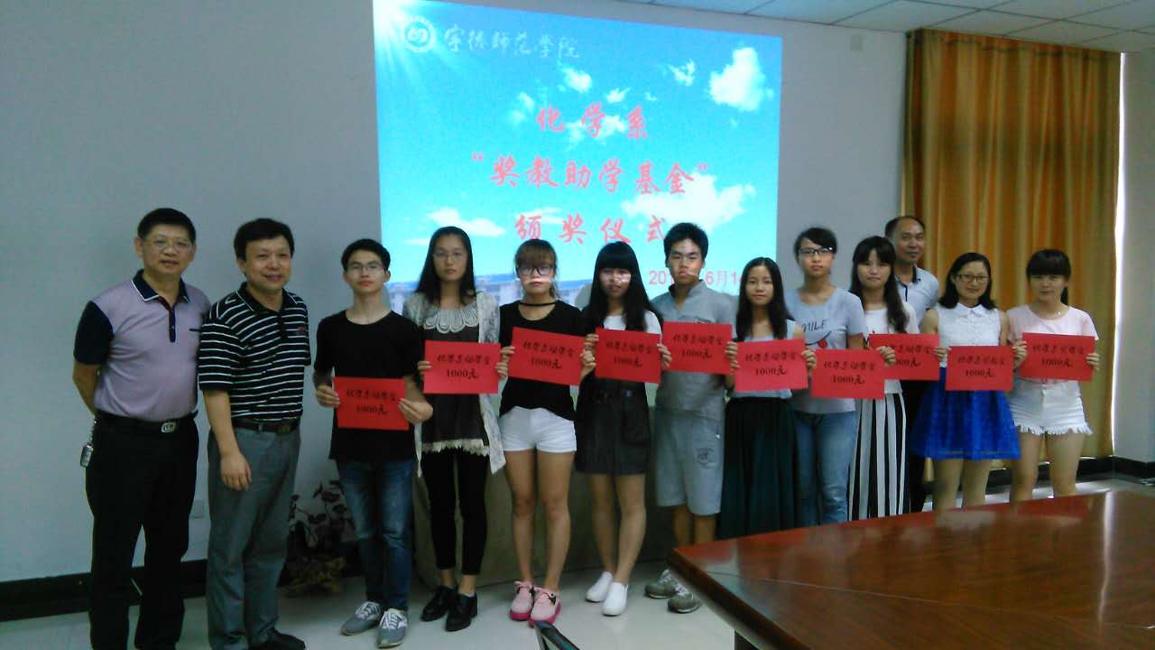 为激励广大教师爱岗敬业、潜心教学,鼓励广大学生刻苦学习、立志成才,本着营造关心、支持教育的良好氛围,化学系于2015年12月成立了“奖教助学基金”,每年6月份评选一次,“奖学金”专门用于表彰、奖励优秀学生和做出突出贡献教师;“助学金”专门用于鼓励家庭困难、学习勤奋的困难学生。该基金首批从企业及爱心人士募集到的金额达6.85万元。
