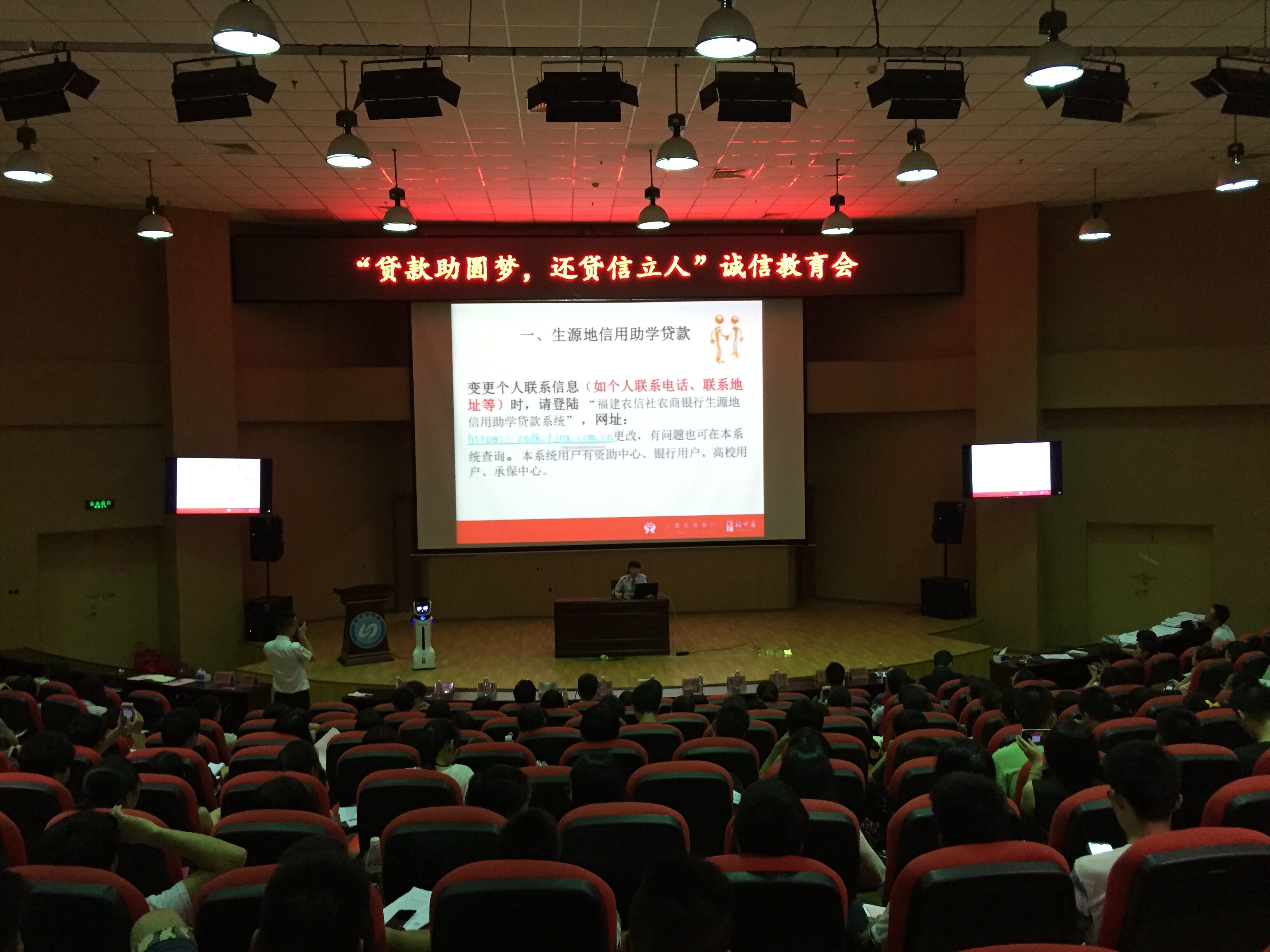 6月13日下午,雷竞技官网在东侨校区图书馆报告厅举行“贷款助圆梦还款信立人”毕业生诚信教育会。2016届200多位生源地贷款毕业生参加会议。会议邀请了中国人民银行宁德中心支行郑寿明行长,詹东新副行长,征信管理科孙江华科长、陈祥云经理和宁德农商银行朱鼎和董事长、吴小峰等业务经理参会。学工处丘怡处长、王啟昭副处长出席会议。会议由学生资助管理中心副主任欧嘉烟主持。